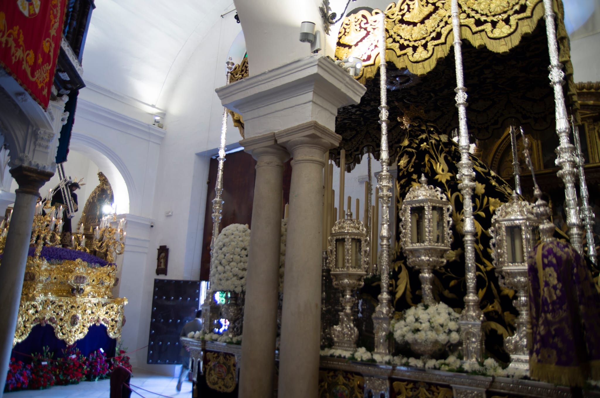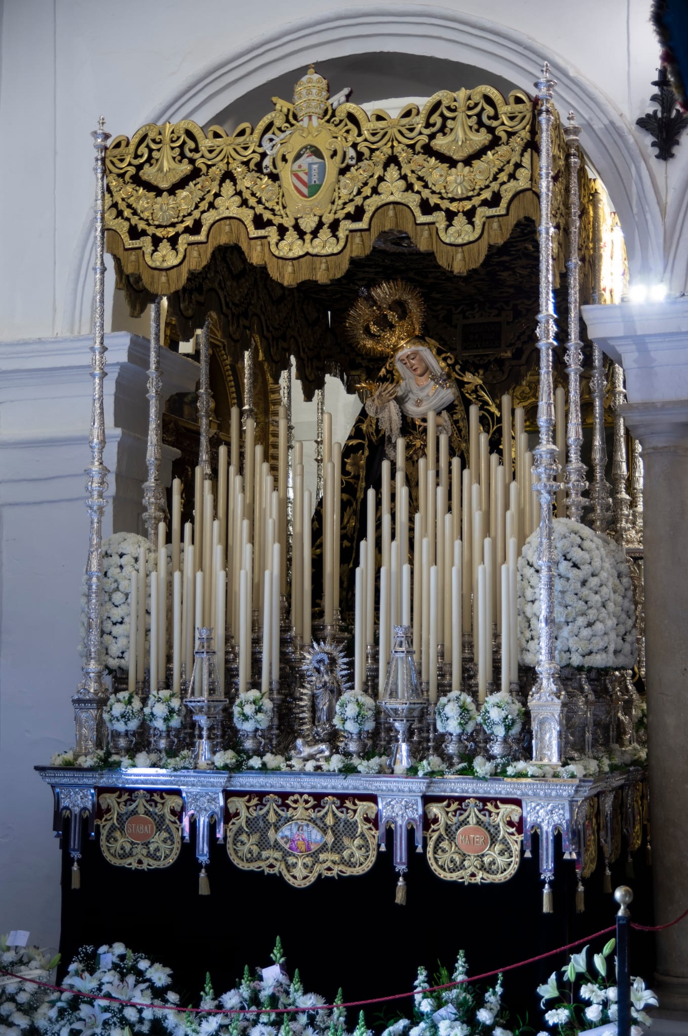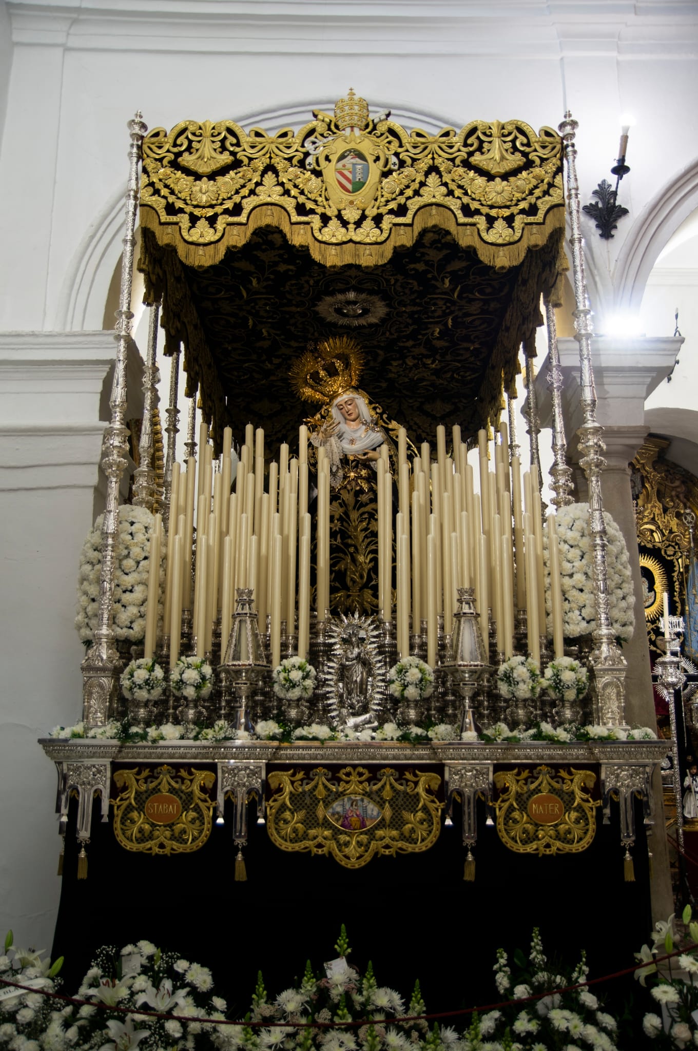 Los pasos de Nuestros Sagrados Titulares preparados para la salida de esta noche.
