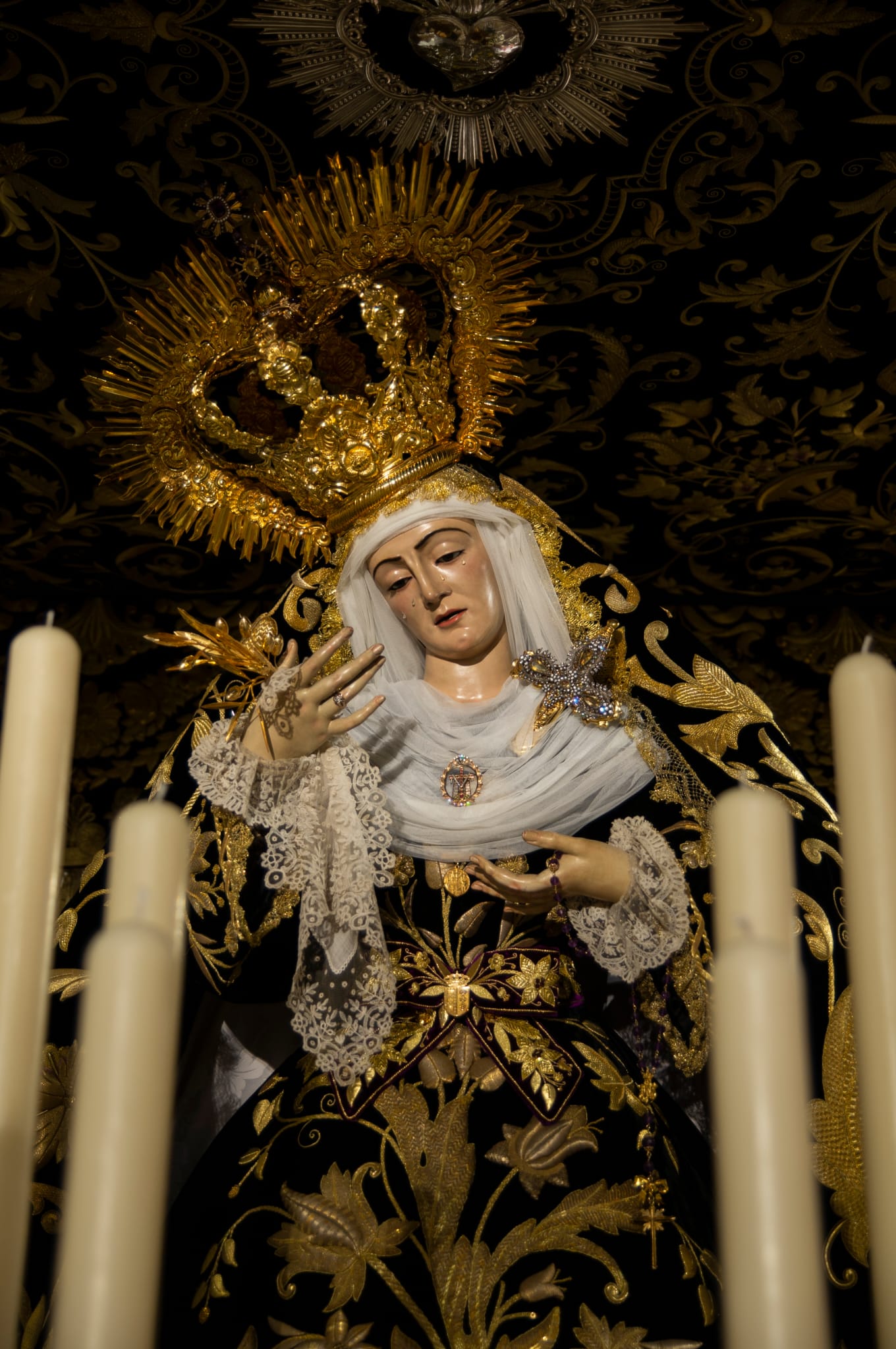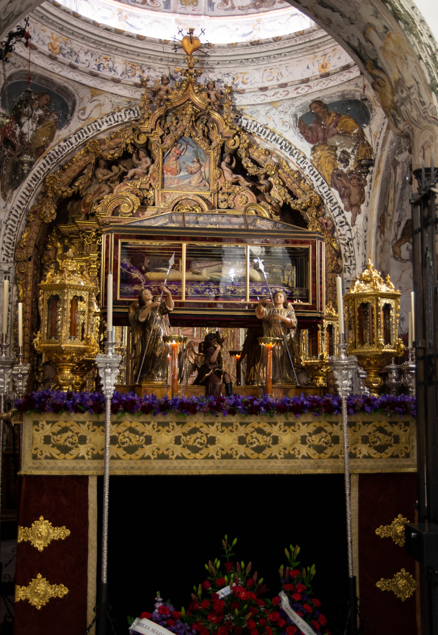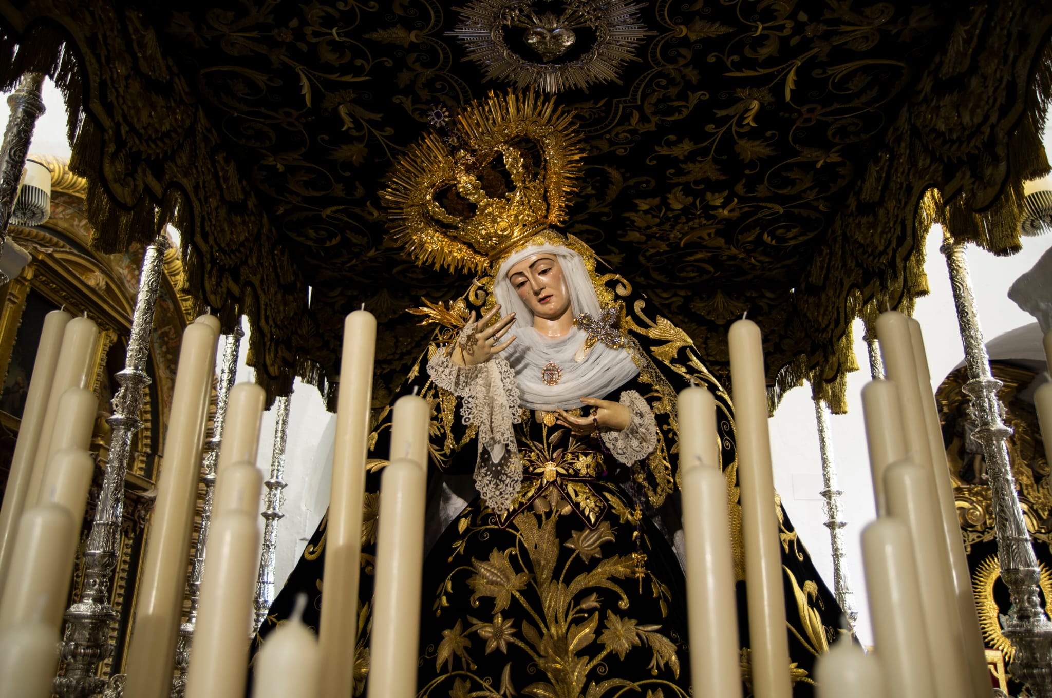 Los pasos de Nuestros Sagrados Titulares preparados para la salida de esta noche.